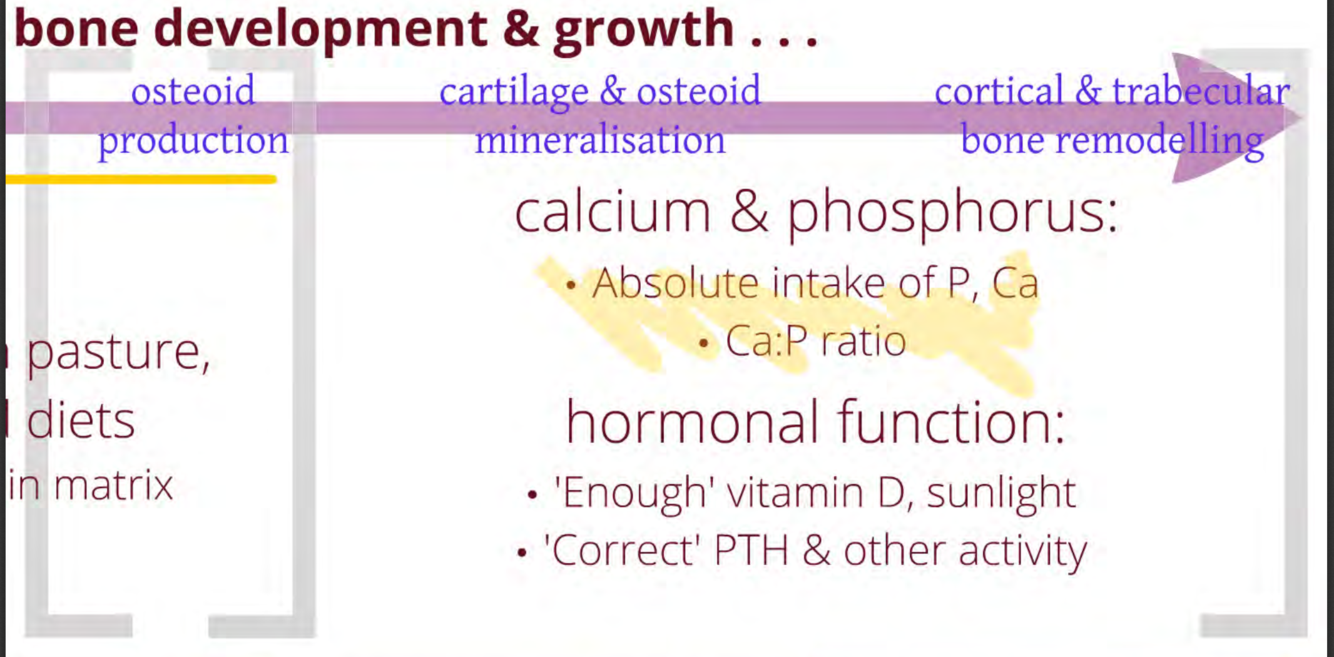What is key during osteoid production, cartilage and osteoid mineralisation and cortical and trabecular bone remodelling in regards to nutrition?