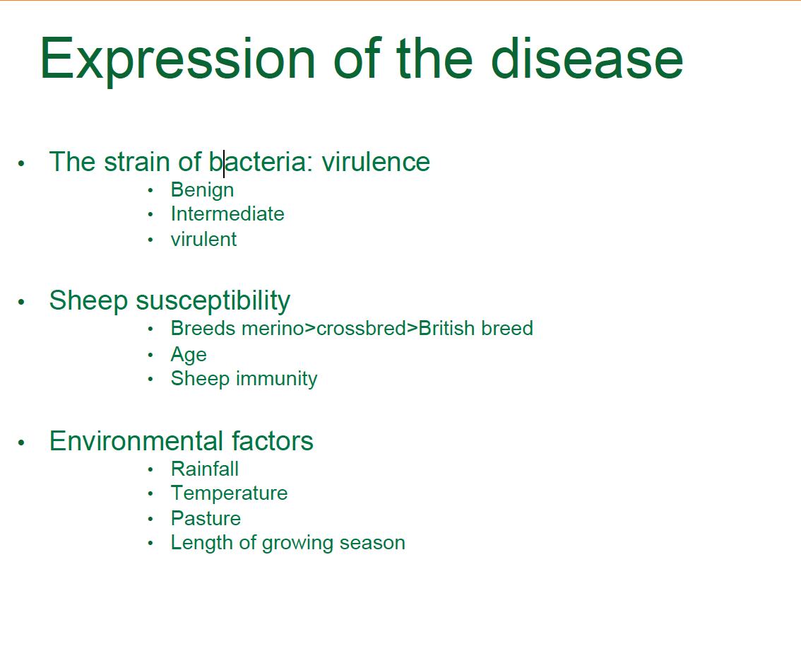 * Cattle: benign long term, virulent short term in wet conditions