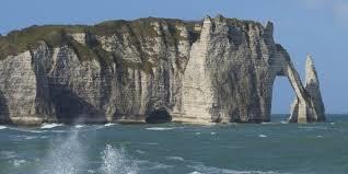 an arch-shaped structure formed as a result of natural processes within a rock feature such as a cliff