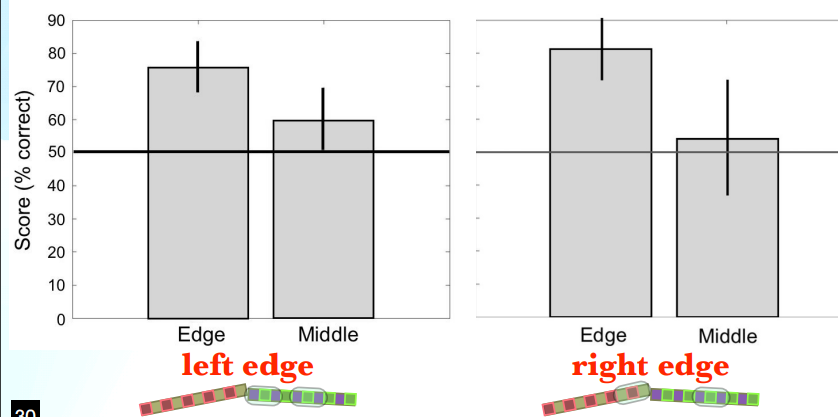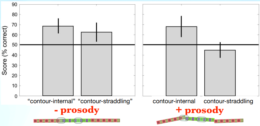 => Words are better recovered (preferred over part-words) fro prosodic edges compared to middle