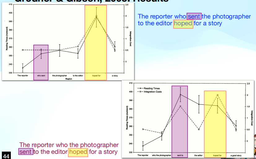 Integration cost affects reading time -> higher integration cost implies holding more items in WM