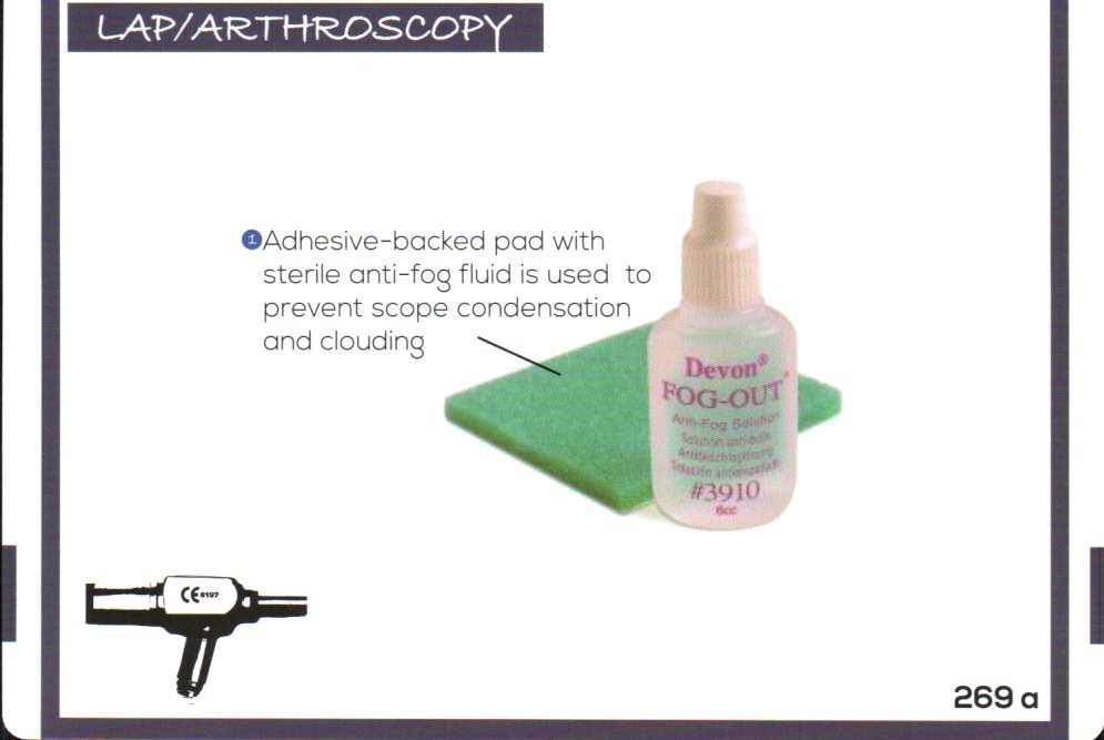 Antifog Foam Pad: There is an adhesive bottom that will attach to things like the drapes and you can then use the bad to inhibit condensation and clouding on surgical cameras