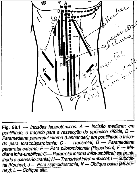 1- como via de acesso a órgãos intra-abdominais em operações eletivas;