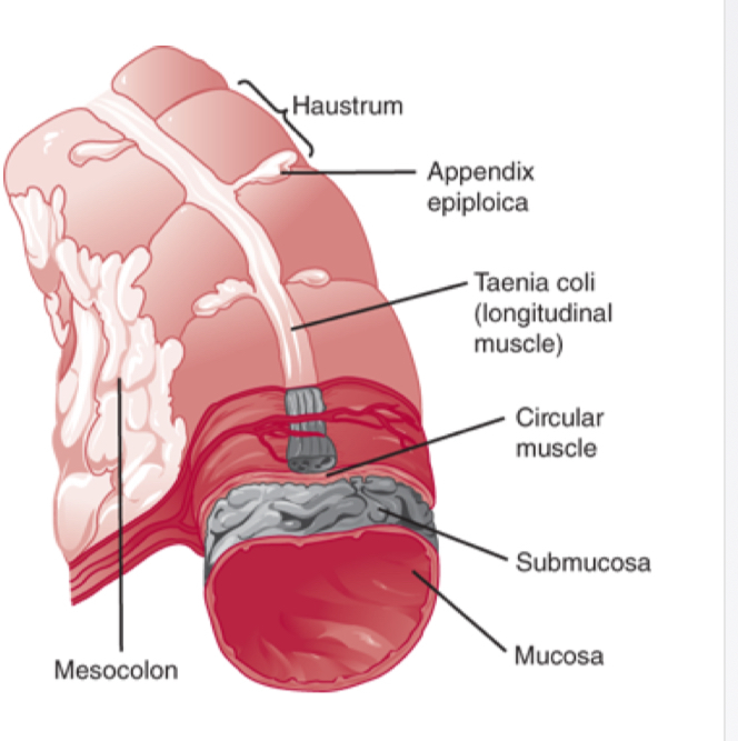 bundles of Taenia coli penetrate the circular layer at irregular intervals