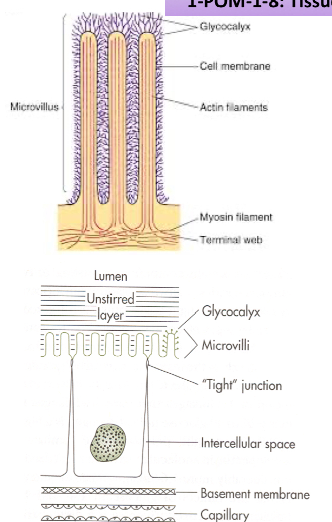 1.0uM high and make up brush border. About several thousands Microvilli per cell