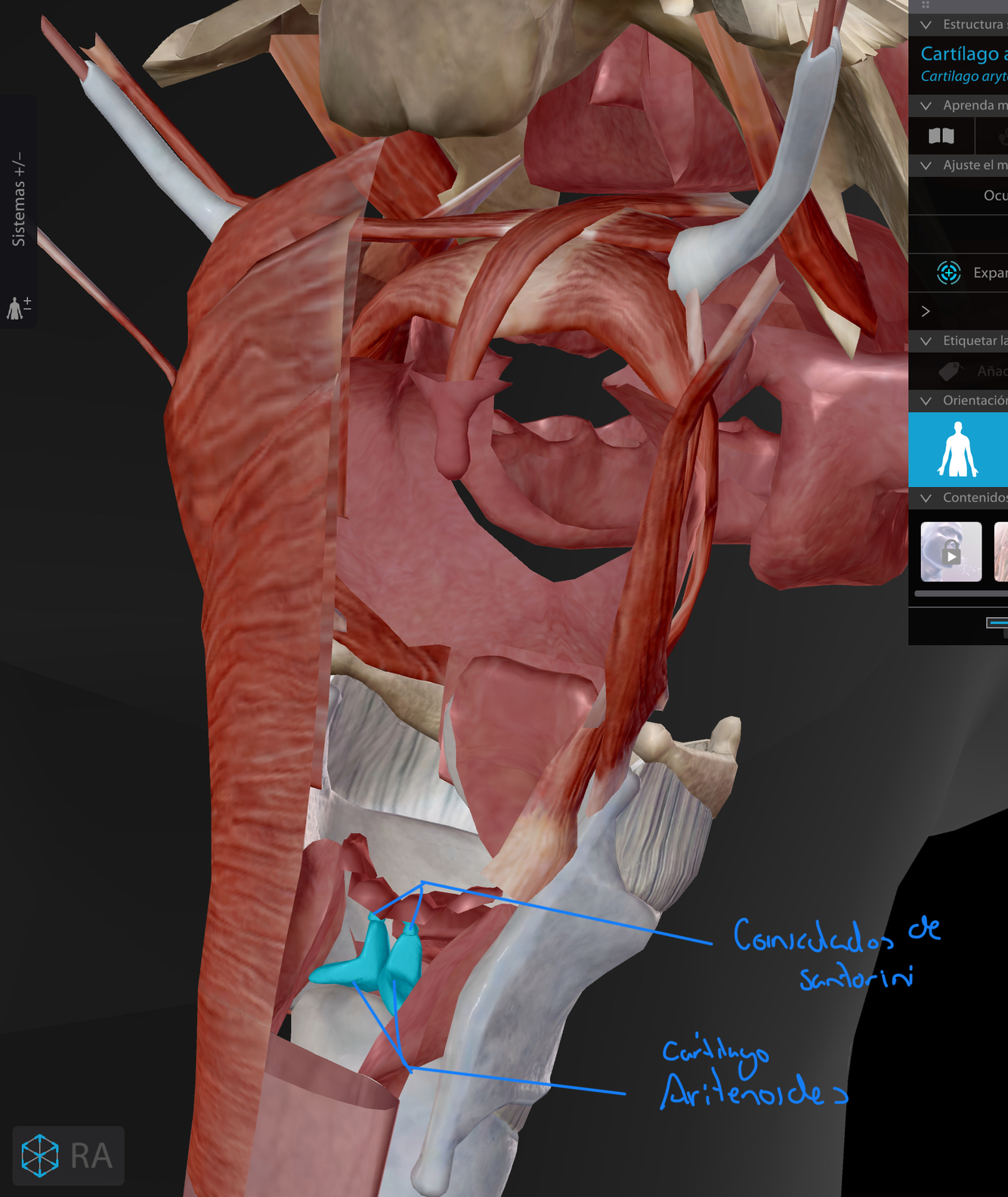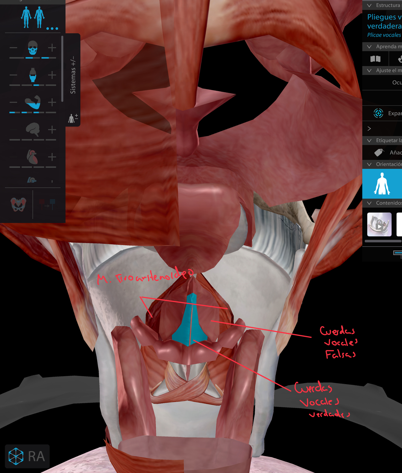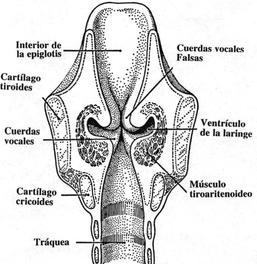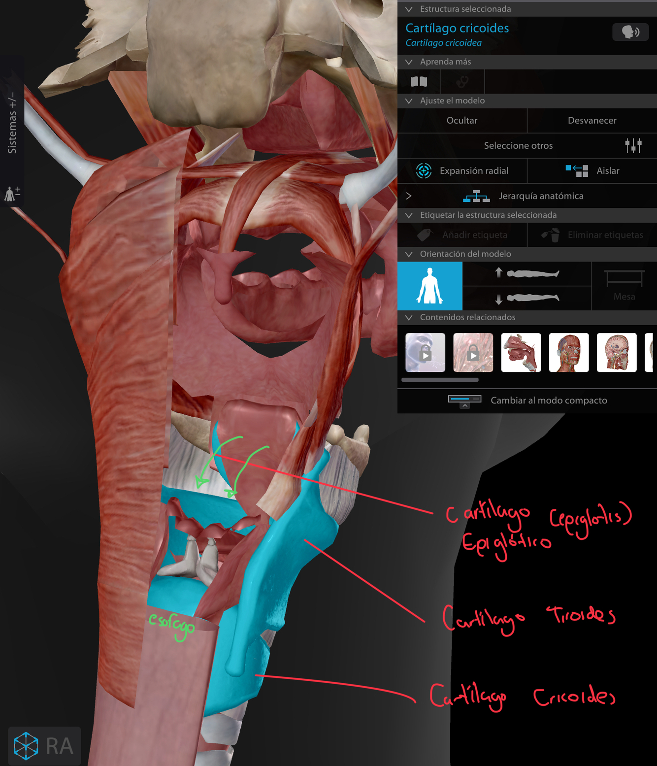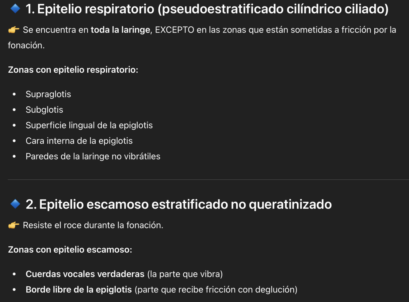 Cartílago epiglotico, mucosa, linea en cara superior de cuerda vocal