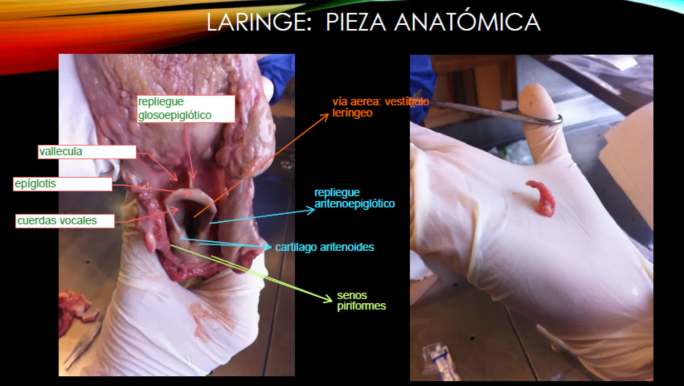 ¿Qué estructuras se observan en la pieza anatómica de laringe?