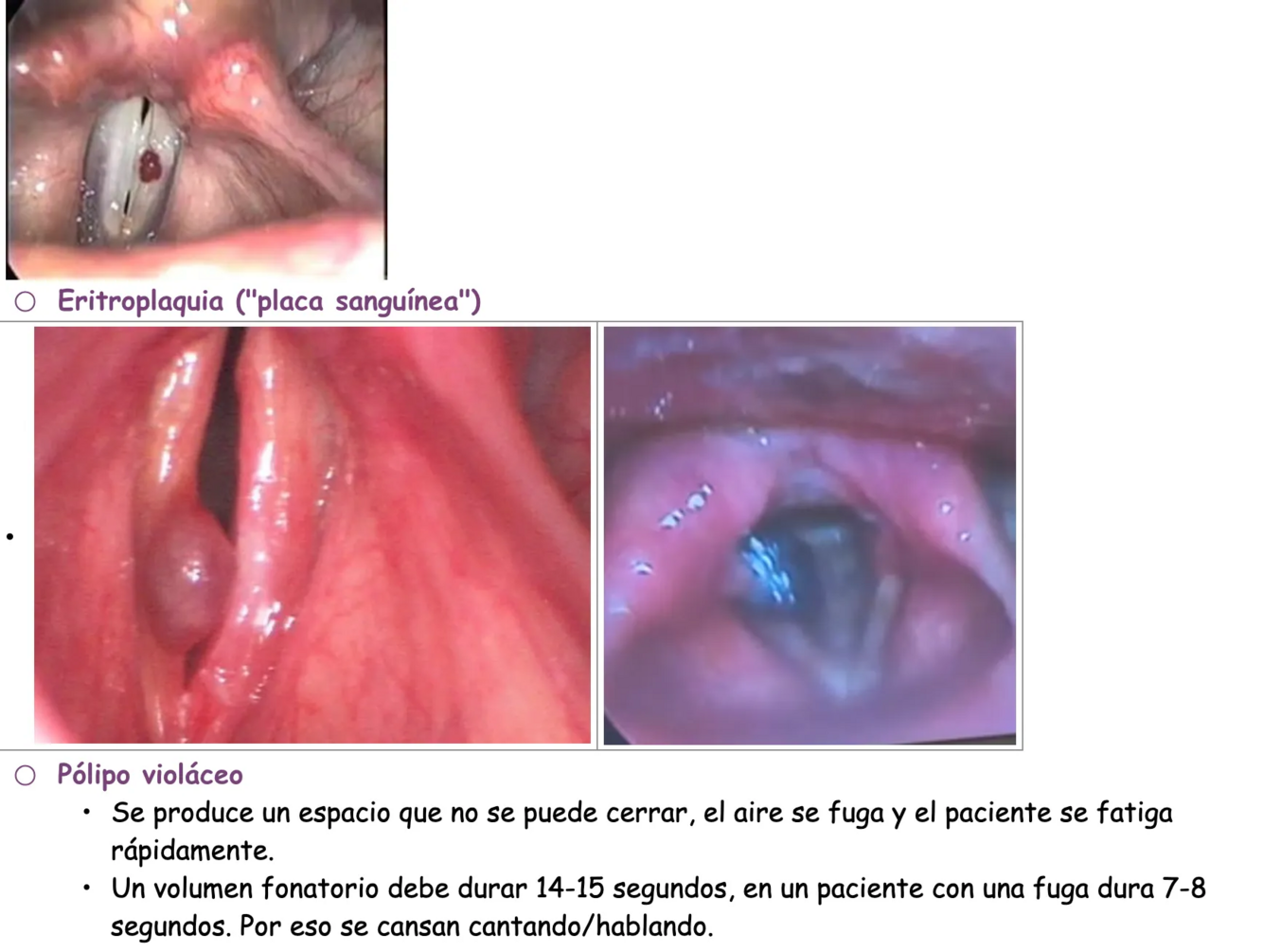 Voz bitonal y fatiga vocal (por fuga de aire al no cerrar glotis).