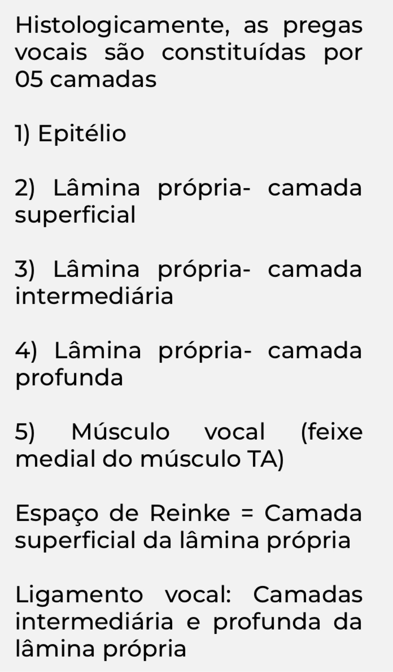 Lâmina própria trilaminar e fica mais definida aos 6 anos com as 3 camadas epitélio lâmina própria e m vocal