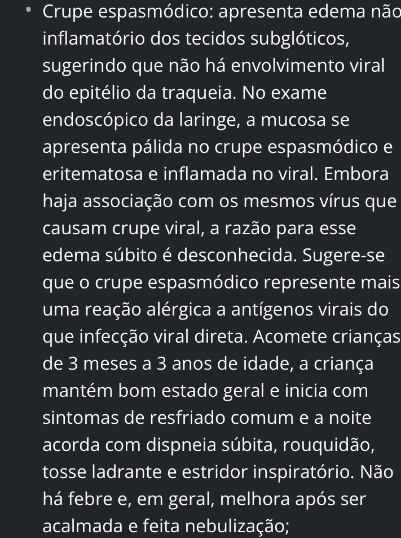 Diferencie crupe espasmódica da crupe viral: