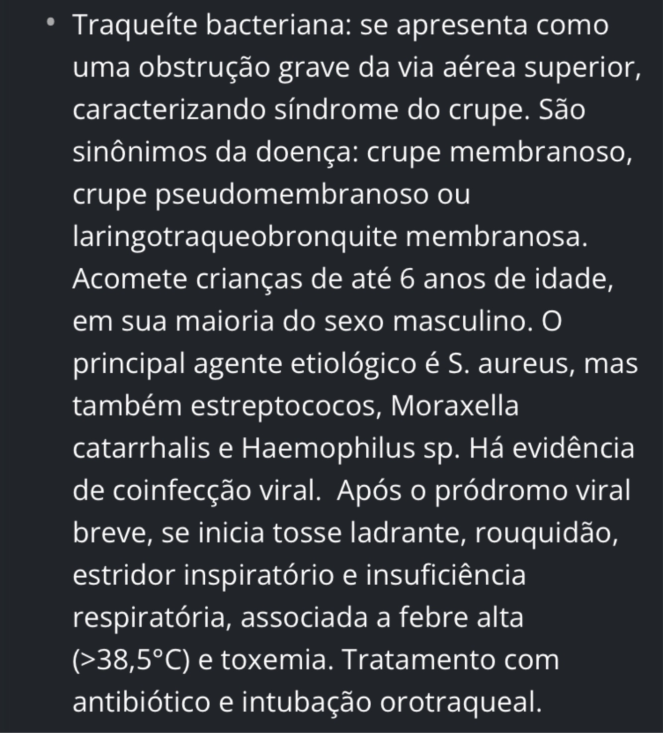 Quadro clínico da traqueíte bacteriana:
