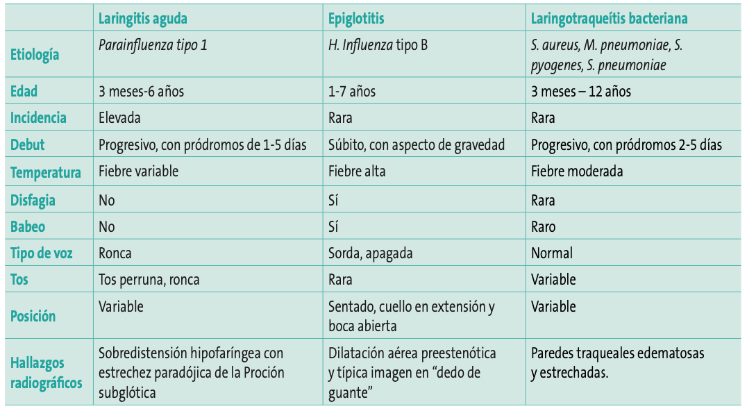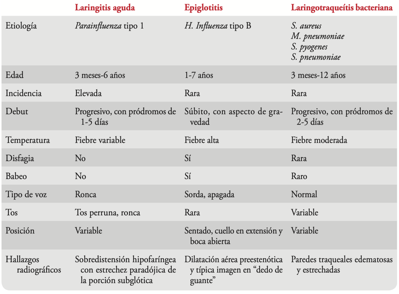 Cuáles son las consideraciones clave para el diagnóstico diferencial de la laringitis aguda en pediatría?