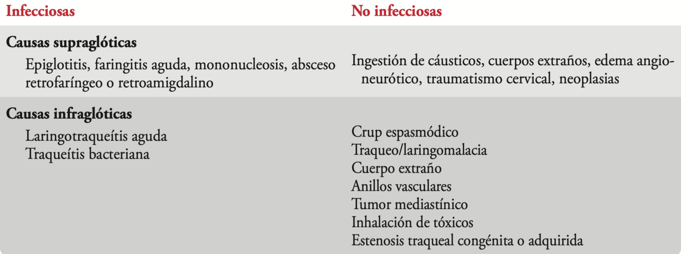 Las dos entidades clínicas más frecuentes que provocan este síndrome son la laringitis aguda y la laringitis espasmódica.
