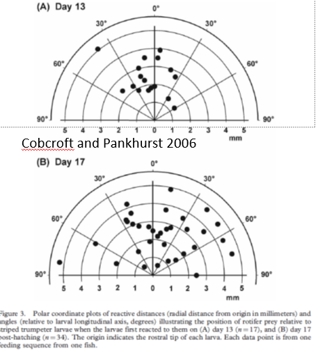 Larvae have cones that can see colour early on Rods that are sensitive to light intensity develop later