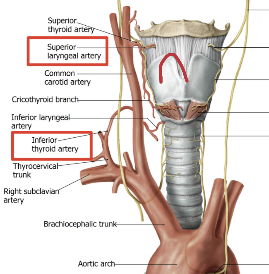 Inferior laryngeal artery (from thyrocervical trunk