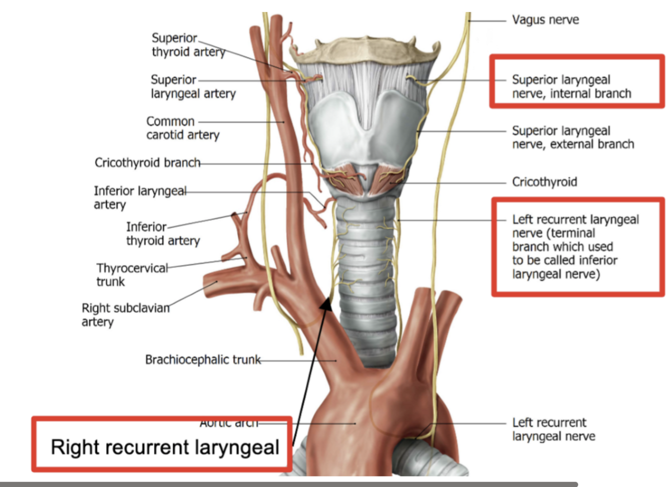 Recurrent laryngeal nerve – right nerve:
