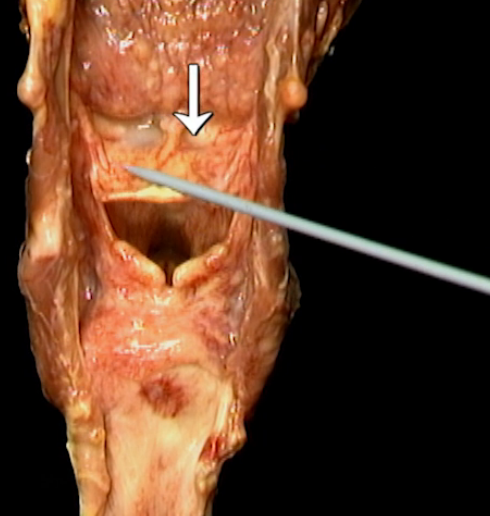 Cricothyroid membrane Access point for cricothyroid puncture in an emergency