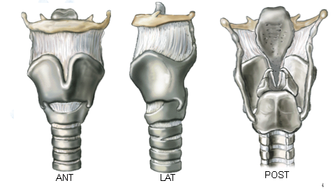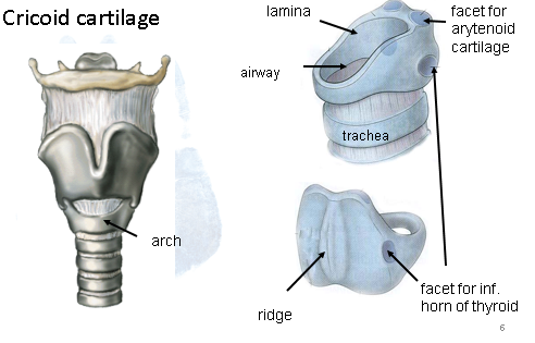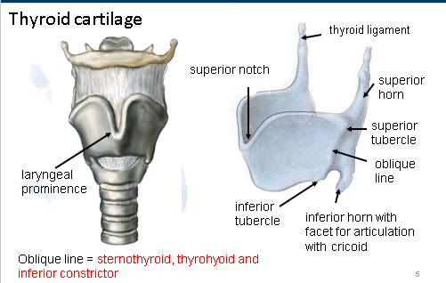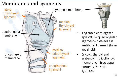 Cricoid, thyroid and arytenoid: Cricothyroid membrane - free upper border is the vocal ligament