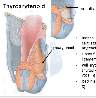 Pull arytenoids forwards towards thyroid cartilage - shorten and relax vocal ligament