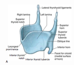 The thyroid cartilage has two horns on its posterior surface, the superior and inferior horn.