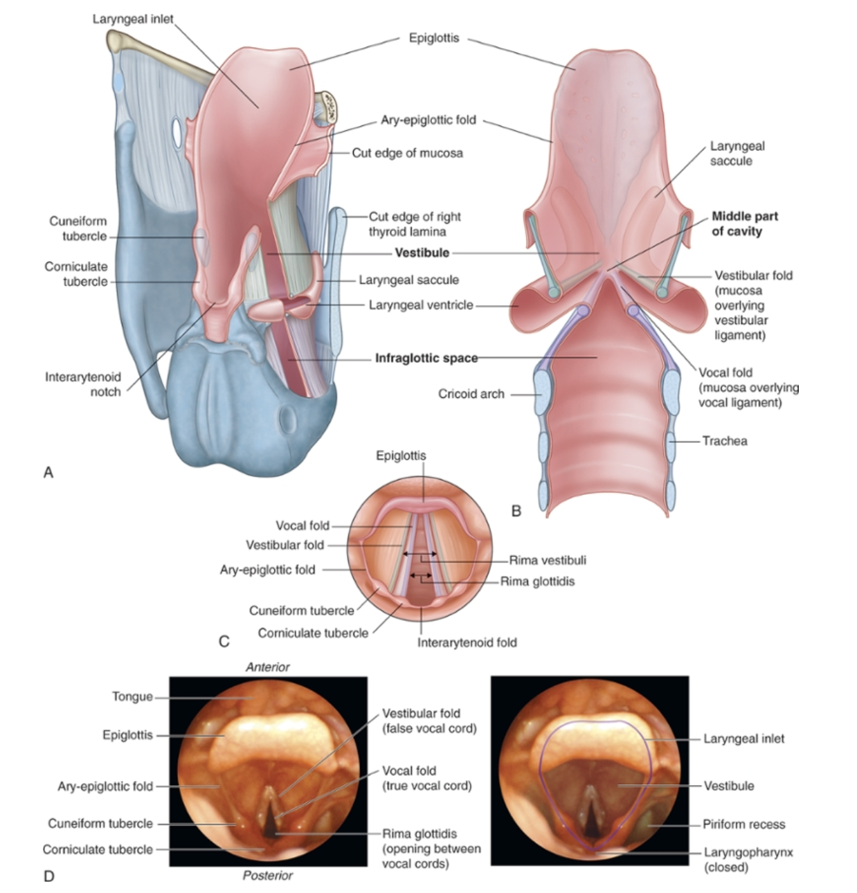 Structure of the cavity of the larynx
