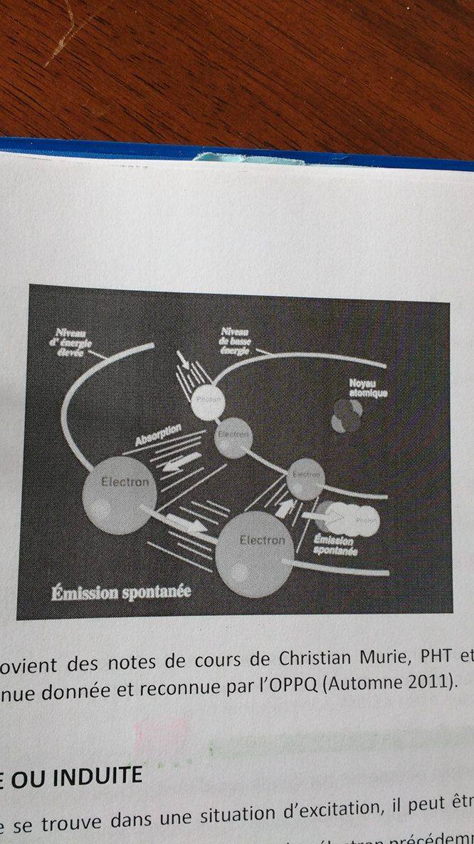 C’est lorsque l’électron retourne sur sa couche initiale après être monté d’un niveau. À ce moment, il y a émition d’un photon qui amène avec lui l’energie excédentaire.