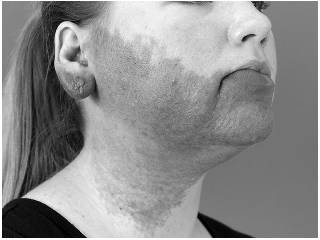 Understanding the potential complications after facial resurfacing is important to know, especially those complications that occur in patients with darker skin. Traditionally, the Fitzpatrick Scale is used to assess skin tone and risk for both the development of skin cancer and also response to post-treatment pigmentation issues. Herpetic lesions can develop in individuals with any skin color after laser treatment. While hyperemia can develop in any patient after laser resurfacing, post-inflammatory hyperpigmentation is of greatest concern in those with darker skin color, especially in an individual like the one described, who has a Fitzpatrick Type IV skin type. While there are different ways to mitigate the issue of pigmentation both before and after treatment, it is a risk factor that should be discussed with patients undergoing skin resurfacing, especially in darker skin individuals. Laser therapy has been used to treat hypertrophic scars and freckles.