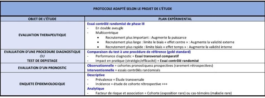 critères à prendre en compte pour le choix du protocole ou plan expérimental