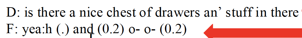 - delay + accounting for often in dispreferred responses eg: disagreement, rejection