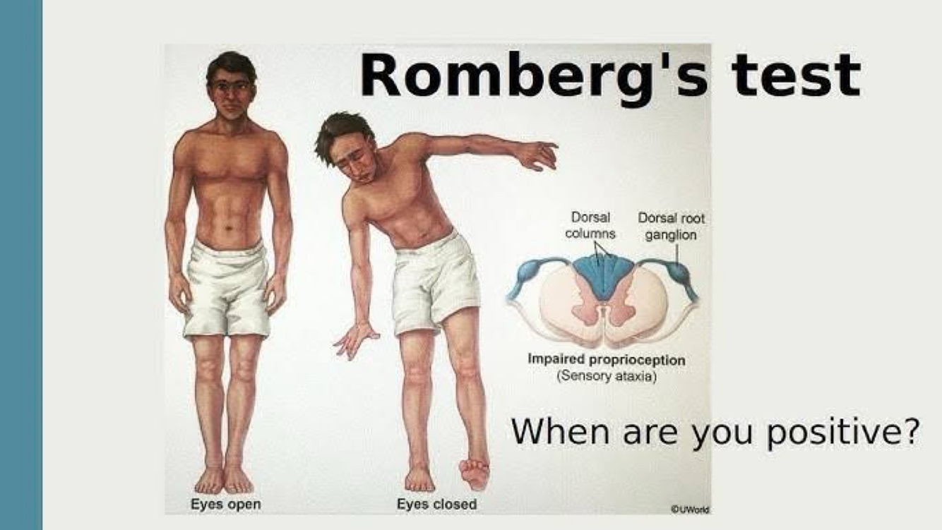 Rationalization: This statement is incorrect regarding Romberg’s test. Romberg’s test primarily assesses the function of the dorsal columns of the spinal cord, which are responsible for proprioception. It does not directly test the anterolateral pathway, which is involved in pain and temperature sensation.