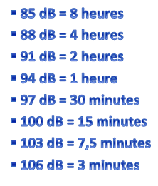 À chaque fois qu’on augmente le son de 3 dB, il faut diminuer le temps d’exposition de combien?