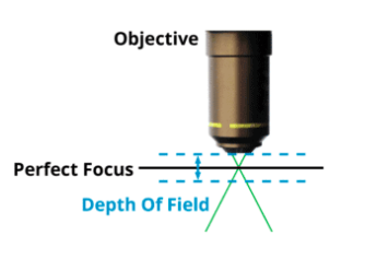 The depth of field refers to the thickness of the plane of focus.