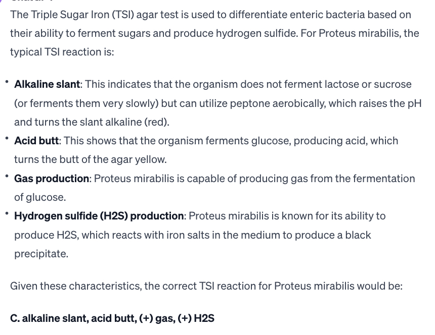 C. alkaline slant, acid butt, (-) gas, (+) H2S