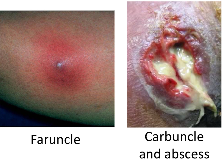 - Furuncle (boil) inflammation filled with pus. Can move subcutaneously and become carbuncle