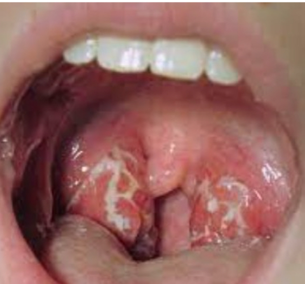 S/S: sore throat, fever, dysphagia