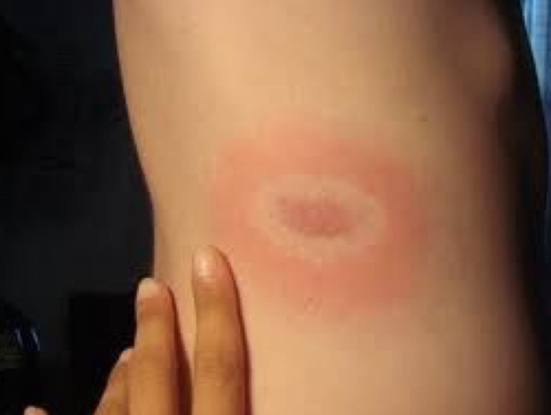 S/S: fever and rash with well-defined edges