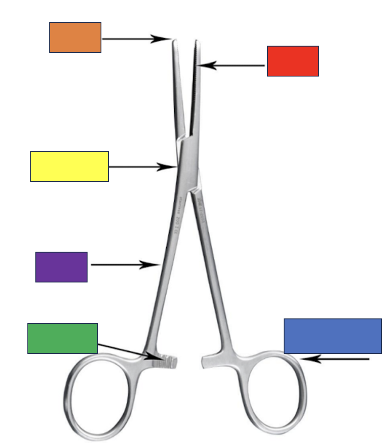 Often referred to as the “legs” of a surgical instrument, this area is found between the box lock and the finger rings [VIOLET]. What is this part called?