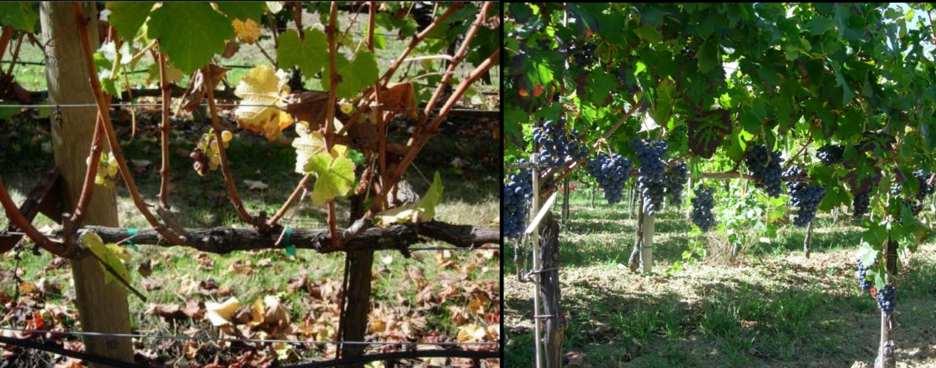 The vineyard on the right was subjected to early leaf removal because there was a resumption of growth with laterals