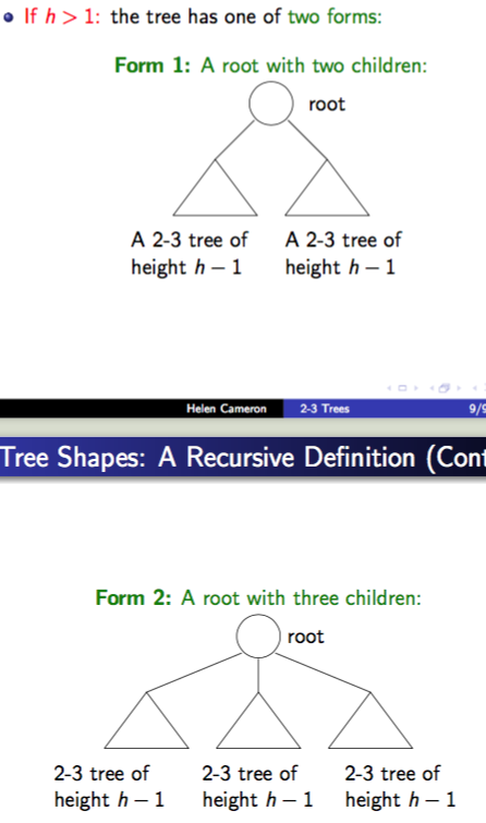 A 2-3 tree of height h is defined as follows: