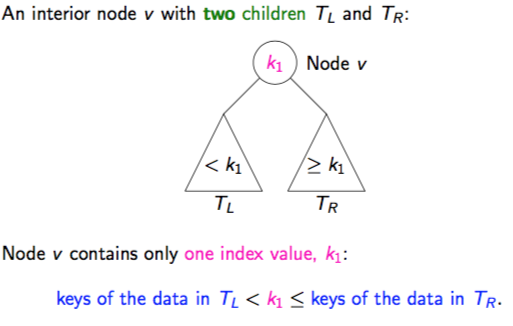 Draw an interior node v with three children Tl and Tr