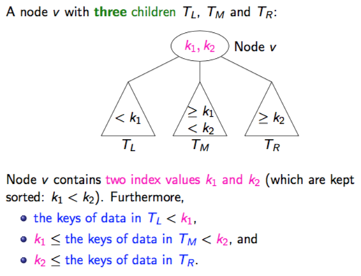 Note: each child of the root is a 2-3 tree and all the children have the same height (the leaves are all on the same level)