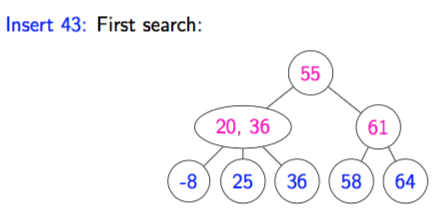 Draw how you would insert 43 into the following tree: