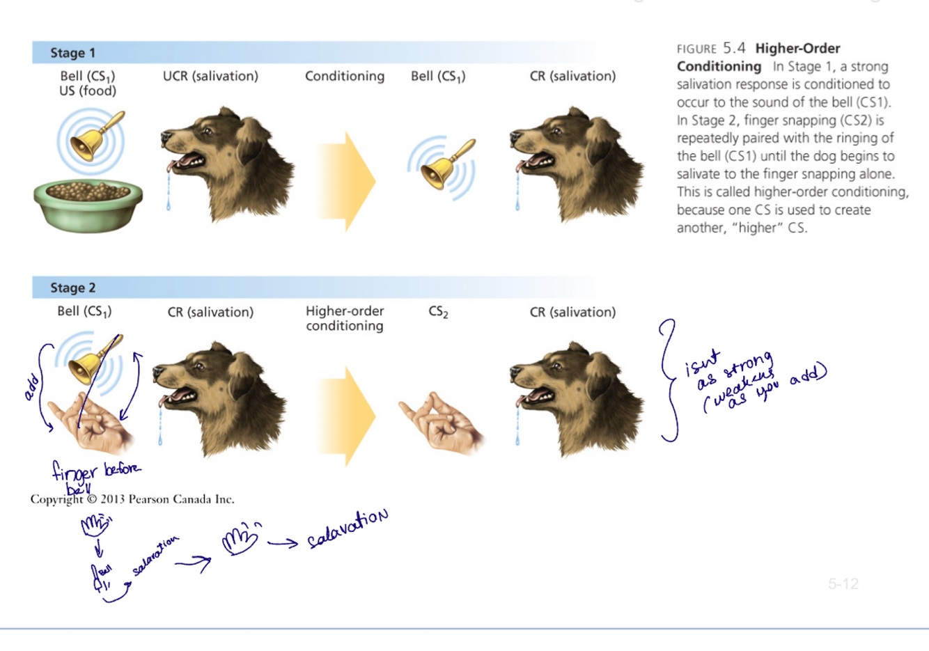 • Second-order (Higher-order) conditioning – when a strong CS is paired with a NS, causing the NS to become a second CS