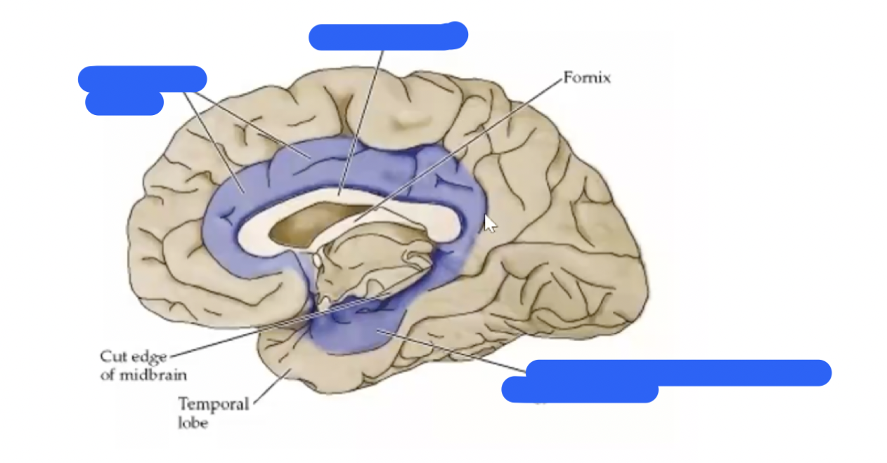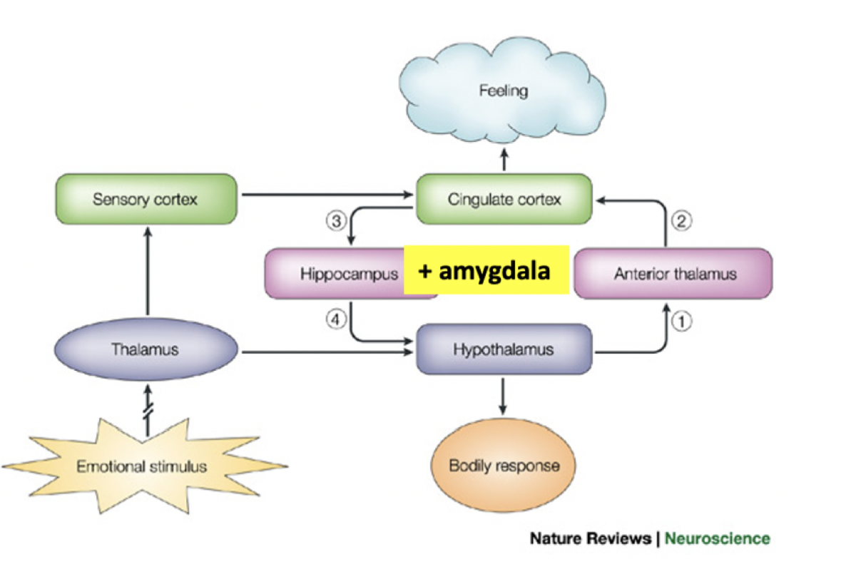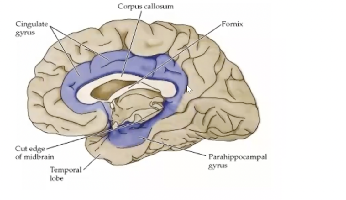 hypothamlmus—> anteirro thalmus—> cingulate gyrus—-> hippocampus + amyydala—> back ton hyopthalamus