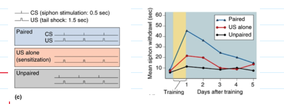 True or False: Aplysia is repeatedly touched lightly (CS) on the siphon, later bonked on the head (US). (Bonked a minute later)