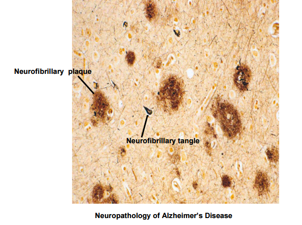 Neuritic (senile) plaques: extracellular accumulation of proteins (including amyloid) and other components