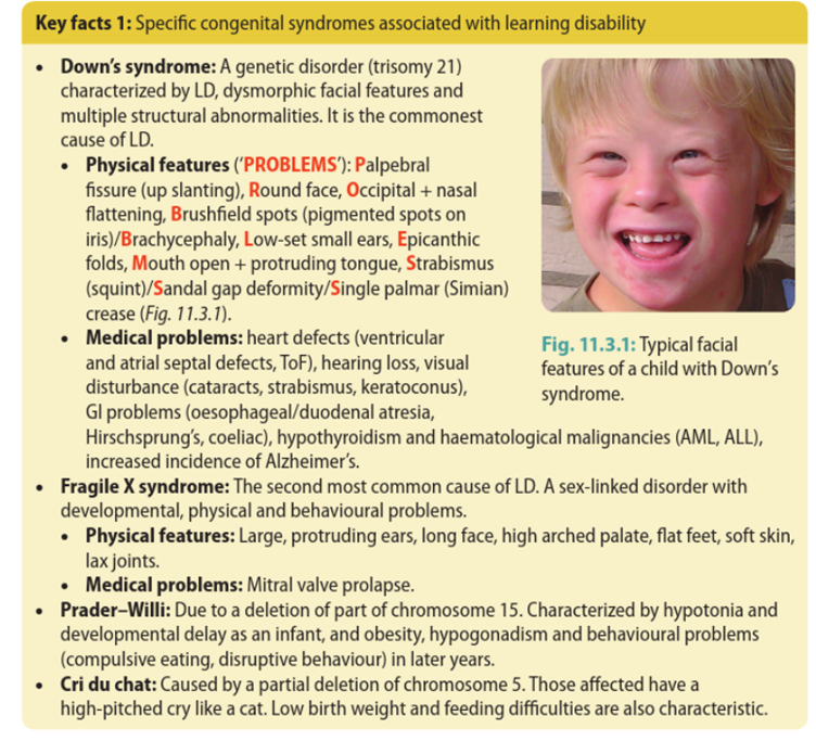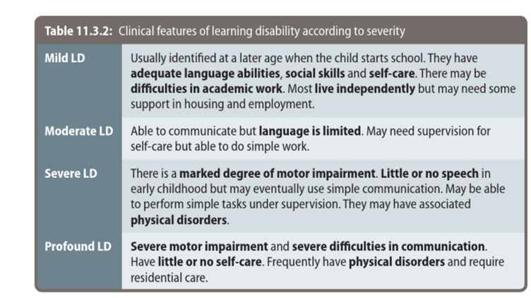 Summary of features of mild, moderate, severe & profound learning disabilities