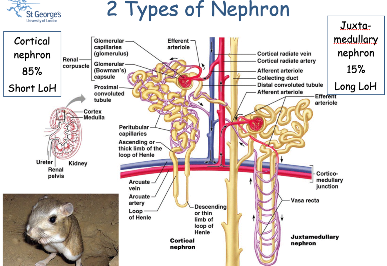 What percentage of the Nephrons in a kidney are cortical, and how many are juxtamedullary?