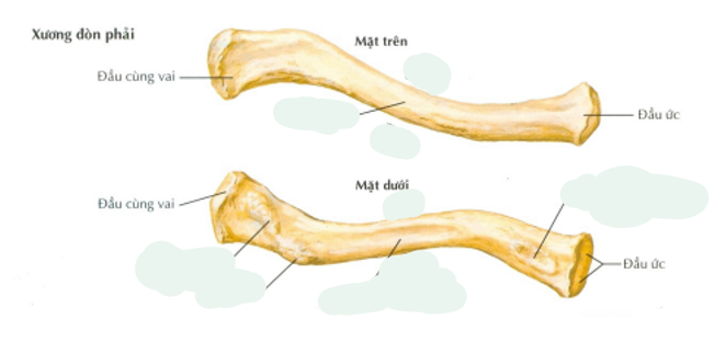 Xương ức, xương sườn, đốt sống, xương chậu, đầu xương cánh tay và đùi