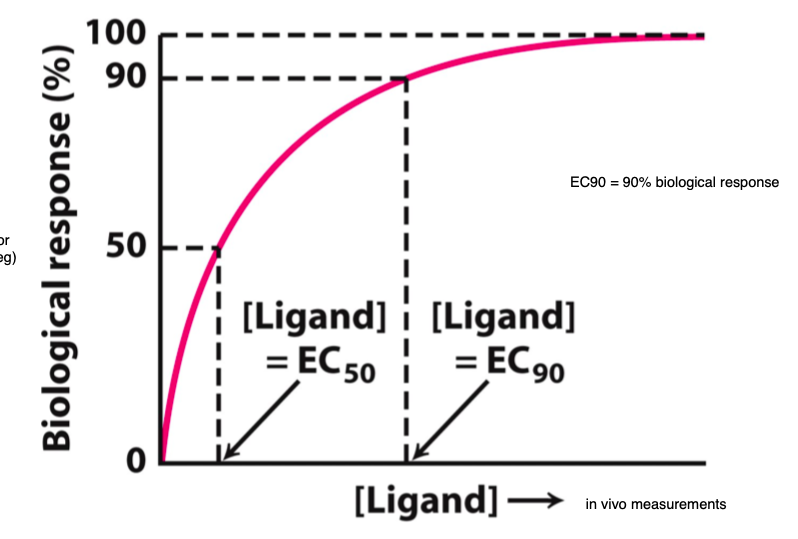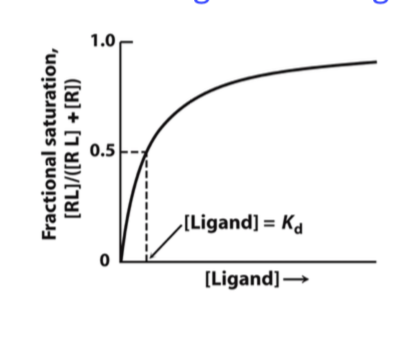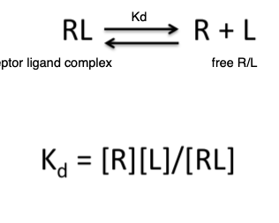 when half receptor sites filled, [R] = [RL] therefore Kd = [L]